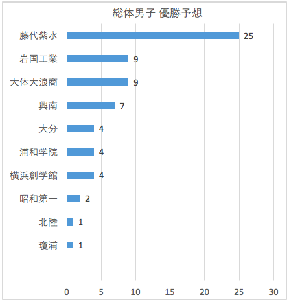 - 1位 藤代紫水(茨城):去年の総体優勝。関東選手権大会で優勝した藤代紫水が最多予想。